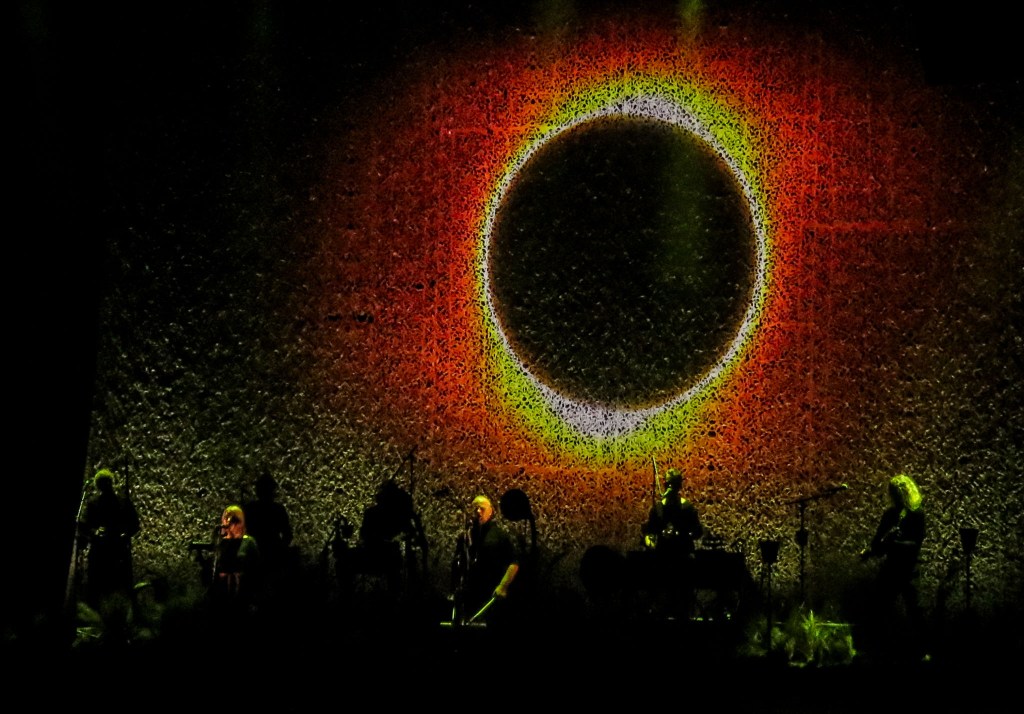 The track saw a bright orange circle (the “sun ring”) slowly appear on the backdrop as the song evolved, before the song faded out.