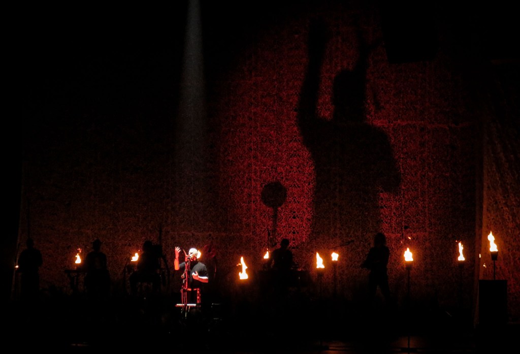Flames were lit as the stage was bathed in red light giving a sombre atmosphere which was the perfect accompaniment for the emotional, powerful rendition of this track, which in many ways embodies everything that Wardruna are about. I always find this song to be poignant, and was left with goosebumps as the line “…dei spora eg trår er kalde, så kalde” was repeatedly left hanging in the heavy atmosphere. The song was brought to a close with Einar’s touching solo passage, before the crowd took to their feet once again for more rapturous applause.